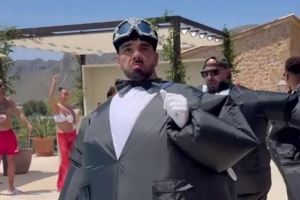 太阳报:拉亚与女友举行婚礼,他身穿充气燕尾服与伴郎团搞笑入场