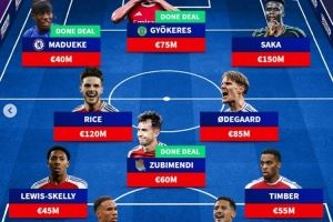 中场:赖斯(1.2亿)、祖比门迪(皇社,6000万)、厄德高(8500万)