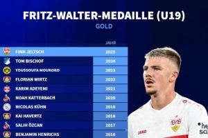 体育资讯10月17日讯 斯图加特中卫耶尔奇当选德国足协年度最U19最佳新秀,德国转会市场列出了历届德国U19年度最佳新秀的名单。