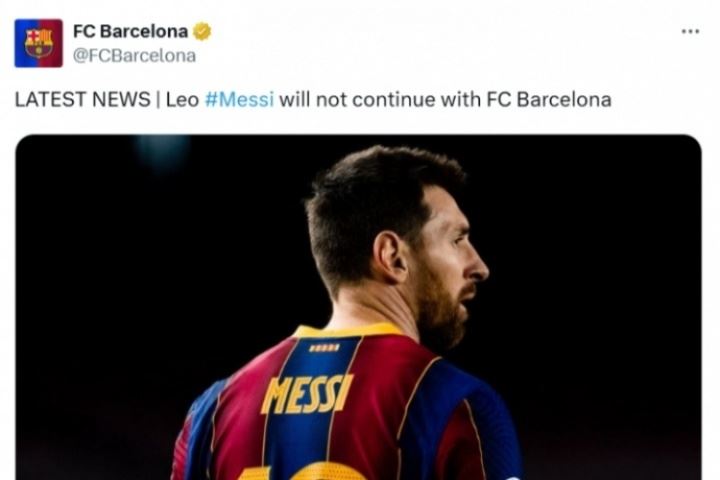 巴萨衷心地感谢梅西为俱乐部的壮大而做出的贡献,祝愿他未来生活和职业生涯一切顺利!